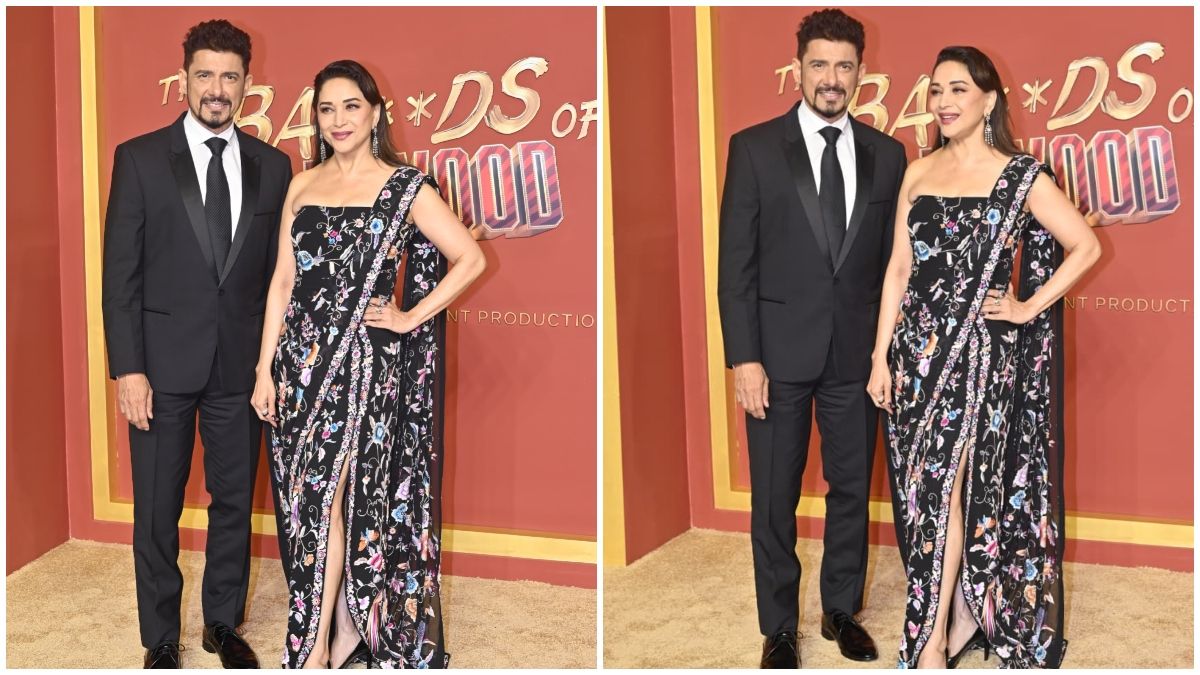 इवेंट में माधुरी दीक्षित अपने पति डॉक्टर श्रीराम नेने के साथ दिखीं. एक्ट्रेस ब्लैक कलर की फ्लोरल इंडियन-वेस्टर्न आउटफिट में नजर आईं. वहीं उनके हसबैंड ब्लैक कलर के कोट-पैंट में थे.