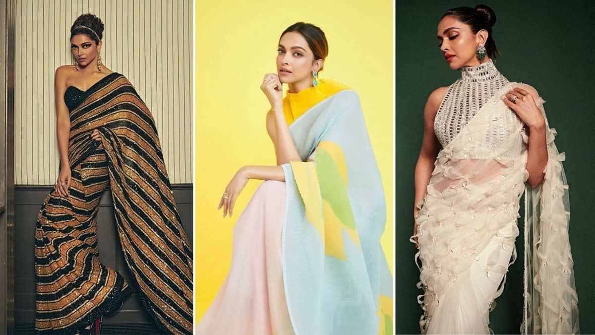 Deepika dazzled in a Bengal tiger-inspired sequinned Sabyasachi saree at Cannes 2022.