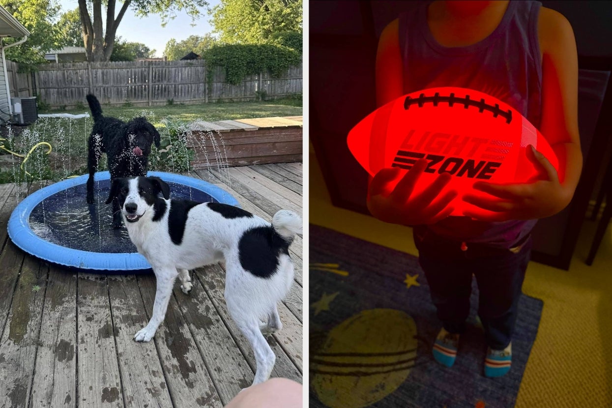And a glow-in-the-dark football set for your human child because there are only so many times you can go out at muggy summer dusk to dig around in bushes and beneath “scary” lawn furniture to find their ball that rolled away, too. Save them (and yourself!) the whining and get them a ball they’ll have just as much playing with as they will hunting down when they kick it into the neighbor’s yard. Again.