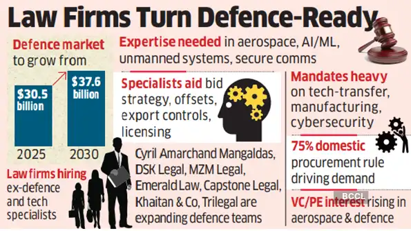 MUMBAI: India’s growing defence market is giving law firms a new line of business, also forcing them to bring in specialists who understand the sector and the opportunities it presents as spending booms amid constant India-Pak tensions and a choppy geo-political scenario.