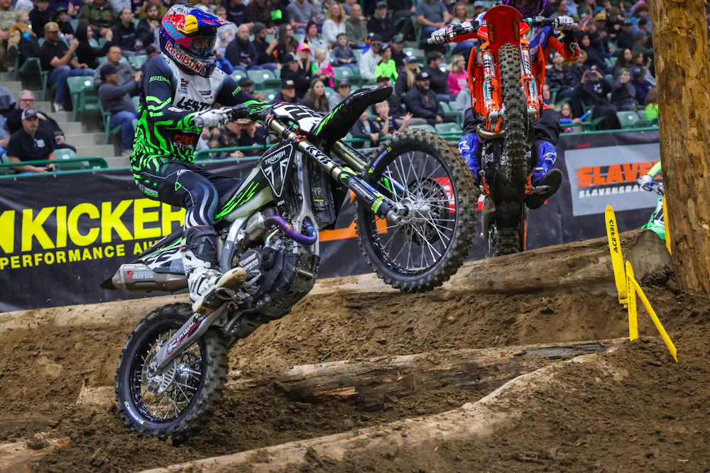 Walker set the tone for his dominant night by posting the fastest hot lap qualifying time of 59.118 seconds, the only rider to break the one-minute barrier. The Triumph rider’s blistering pace gave him first gate pick for Moto 1 and signaled his intent to finally convert his raw speed into overall victory.