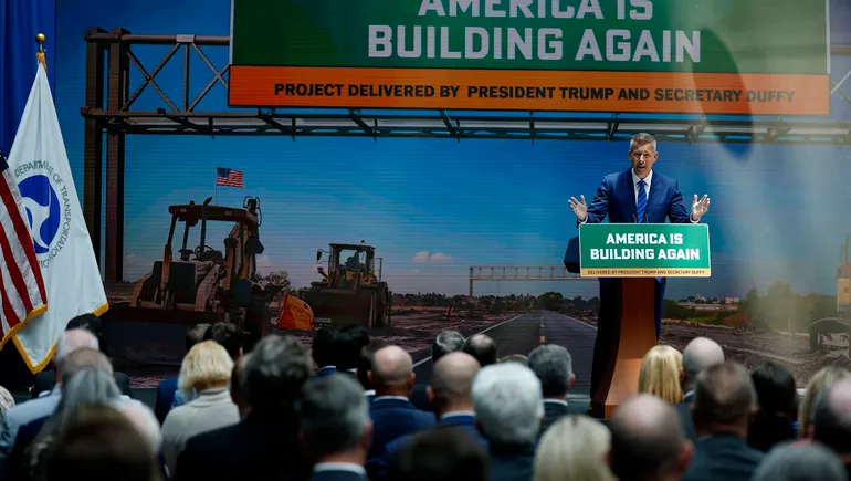 U.S. Transportation Secretary Sean Duffy spoke at an event at the Department of Transportation on July 17, 2025, in Washington, District of Columbia. The DOT’s Federal Transit Administration wants to change policy guidance for certain grant programs.
