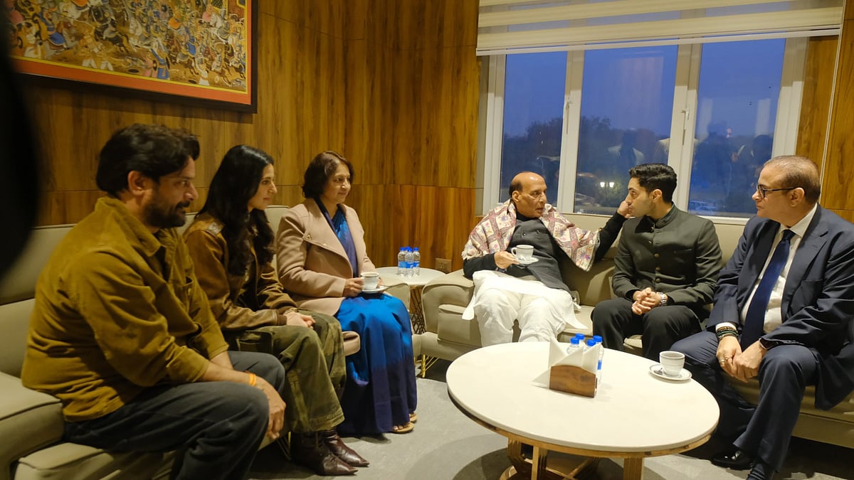Ahead of Ikkis release, Defence Minister Rajnath Singh sat down for a special screening of Agastya Nanda’s upcoming war drama, directed by Sriram Raghavan, in Delhi.