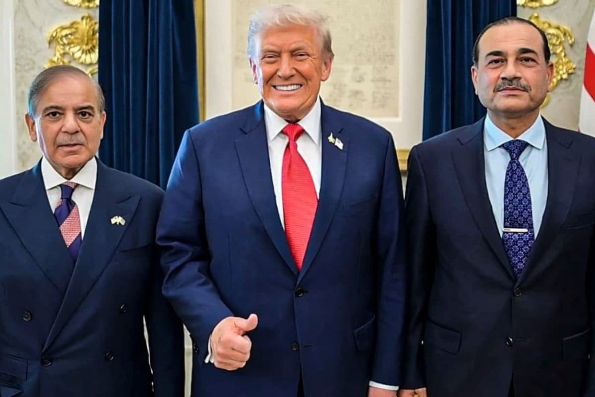 US President Donald Trump meets Pakistan PM Shehbaz Sharif and Field Marshal Asim Munir at the White House. (Image: PTI)