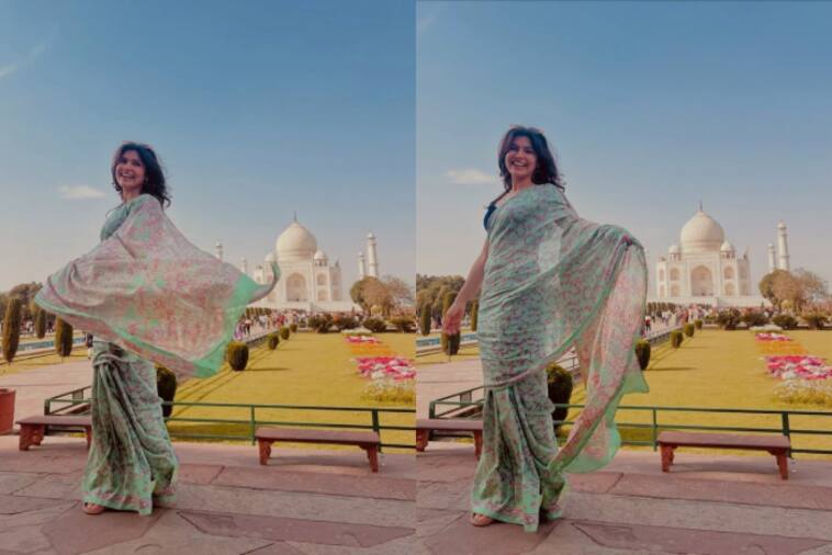 Nidhi’s simple saree look was enough to catch everyone’s eyes. Her floral saree with a blue blouse looks simple but chic. Keeping accessories and make-up minimal, she let her natural beauty shine.